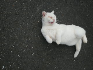 先日はタヌキでしたが、今日は会社の駐車場に白猫さんが転がっておりました。